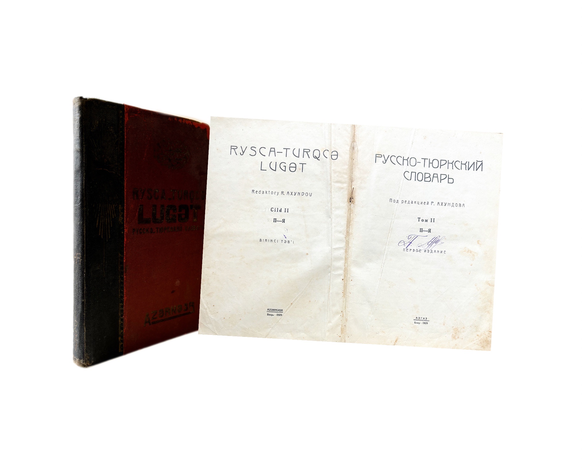Продолжение редкого и масштабного лексикографического труда, начатого в 1928 году — второй том «Русско-Тюркского словаря» под редакцией известного азербайджанского лингвиста Рашида Ахундова. Издан в Баку в 1929 году, на волне активной языковой реформы и культурной модернизации тюркских народов в СССР.